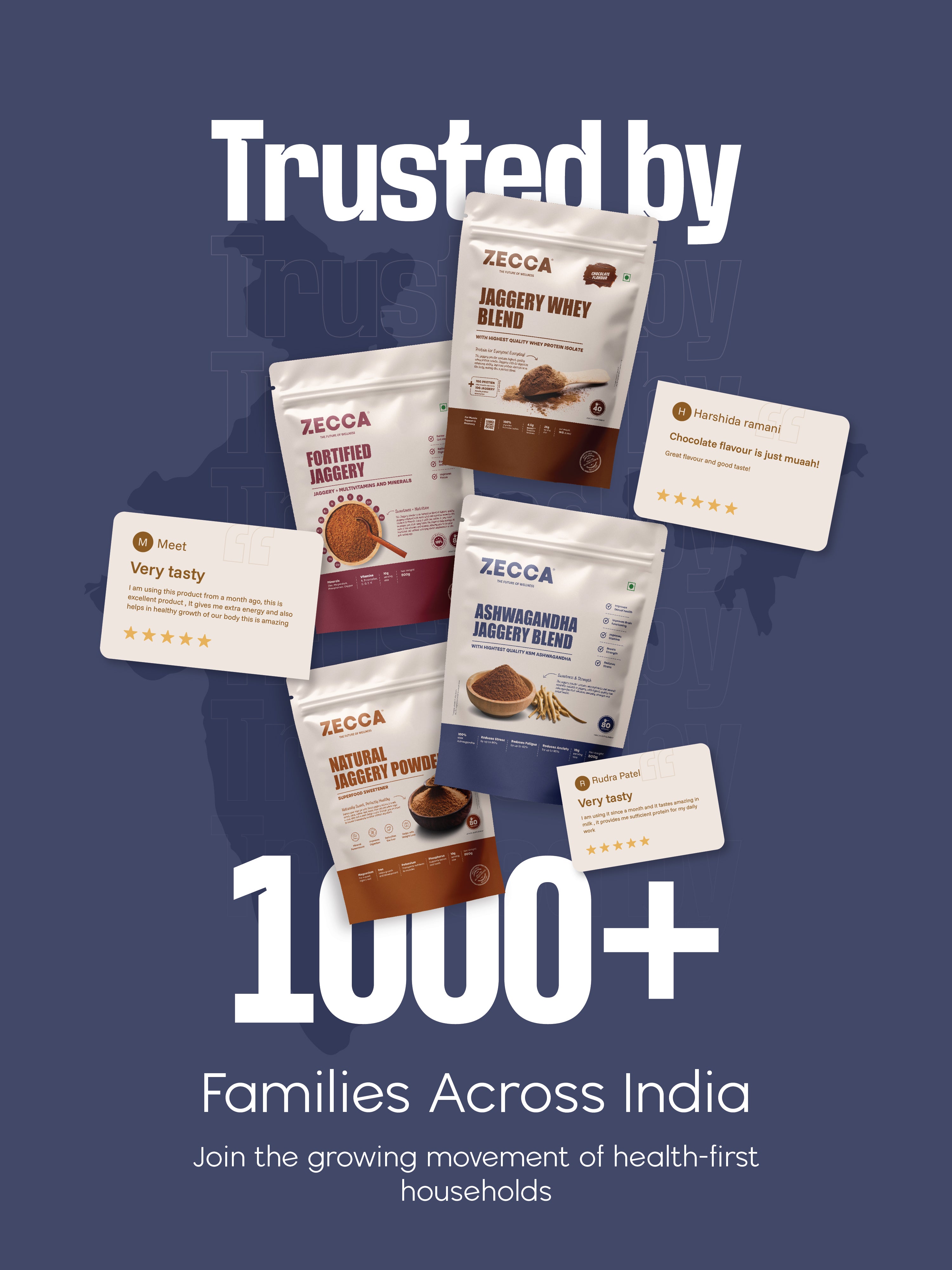 This is where Zecca was born, with a core idea of enhancing lifestyle, and spreading awareness of the immense benefits of this traditional powerhouse of food. However, we were not yet completely satisfied as jaggery had its own drawbacks, and at the end of the day, it was just complex form of sugar. We wanted to enhance it further. After meeting with many doctors, dieticians, health coaches, and people from some big supplement brands, we started research on the idea of enhancing jaggery with essential elements that Indian body lacks. And the most prominent of them were vitamins, minerals, and protein.