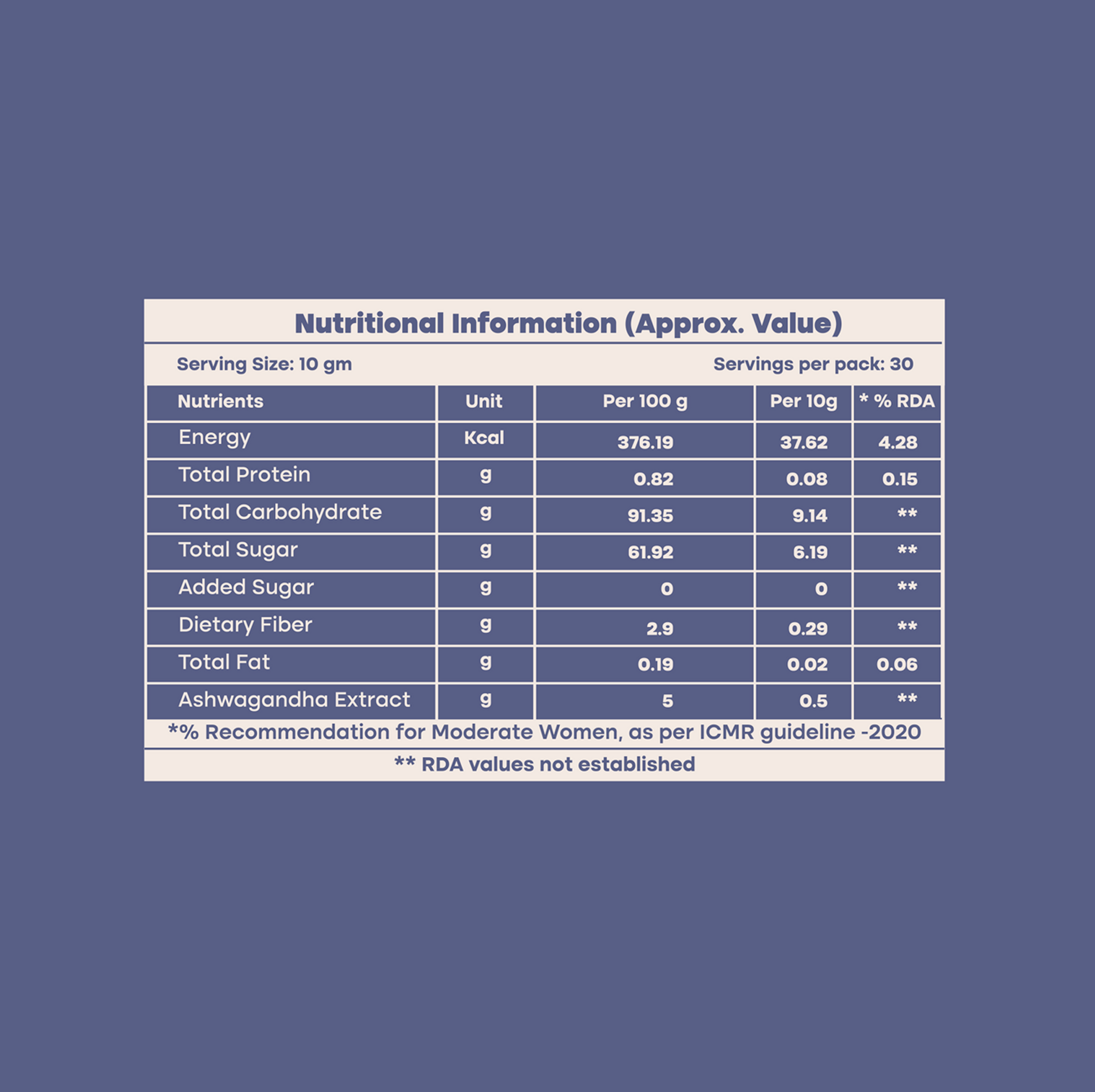 A calming blend of premium KSM-66 ashwagandha and natural jaggery, designed to be replaced with refined sugar.