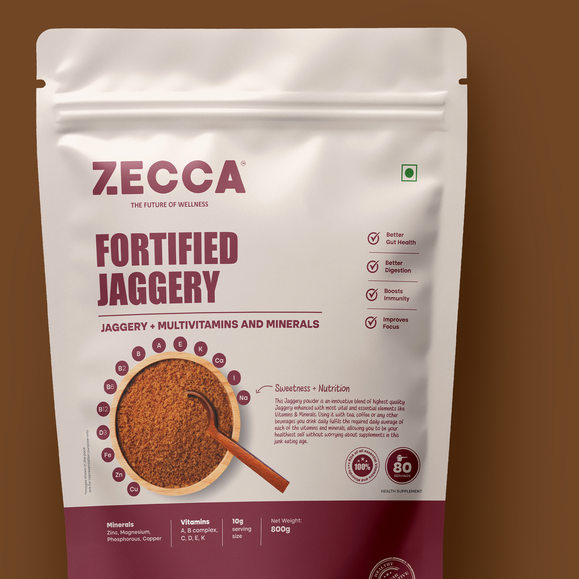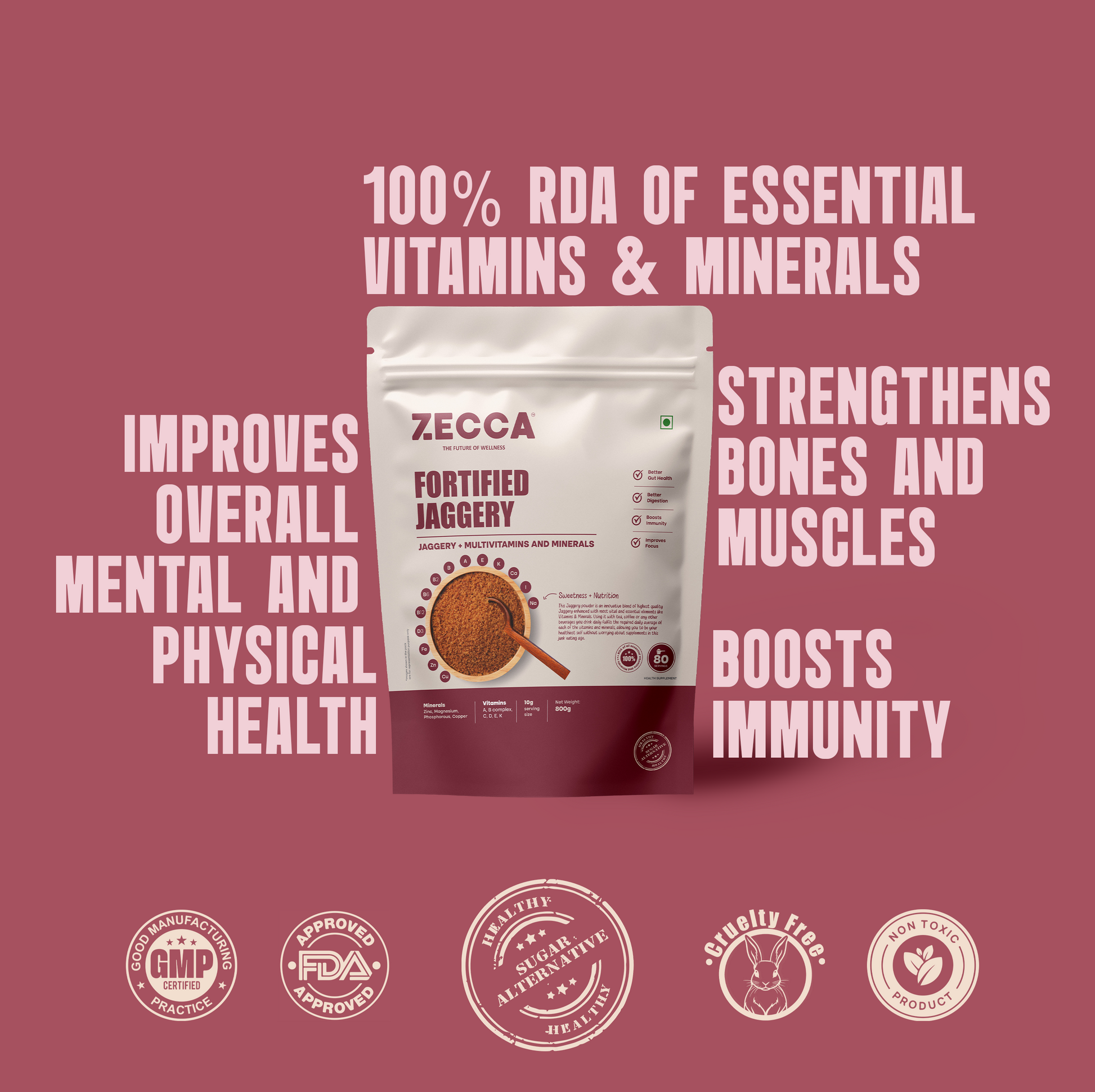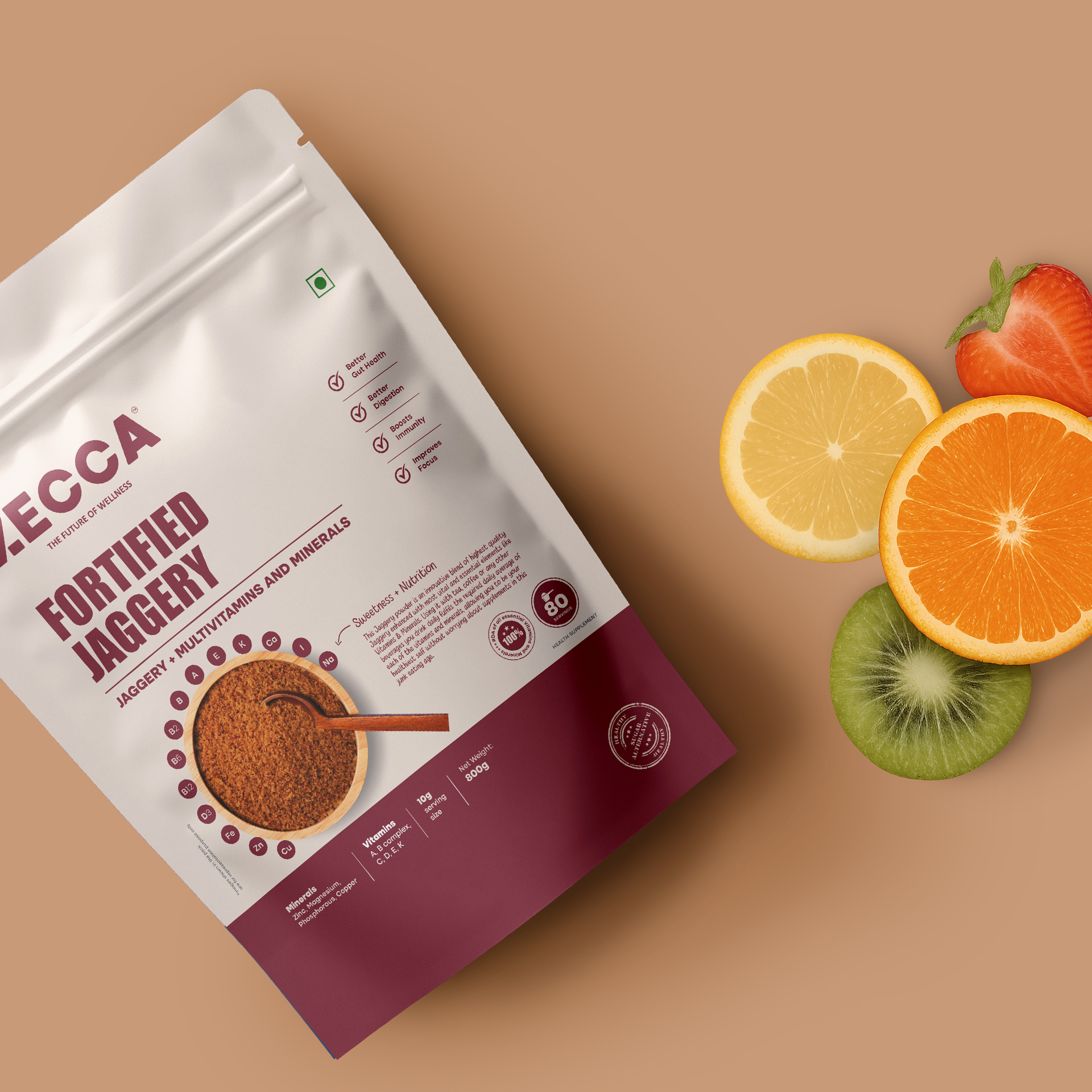 A nutrient-rich jaggery blend fortified with 100% RDA of essential vitamins and minerals. The ultimate substitute for sugar in wellness-focused diets.