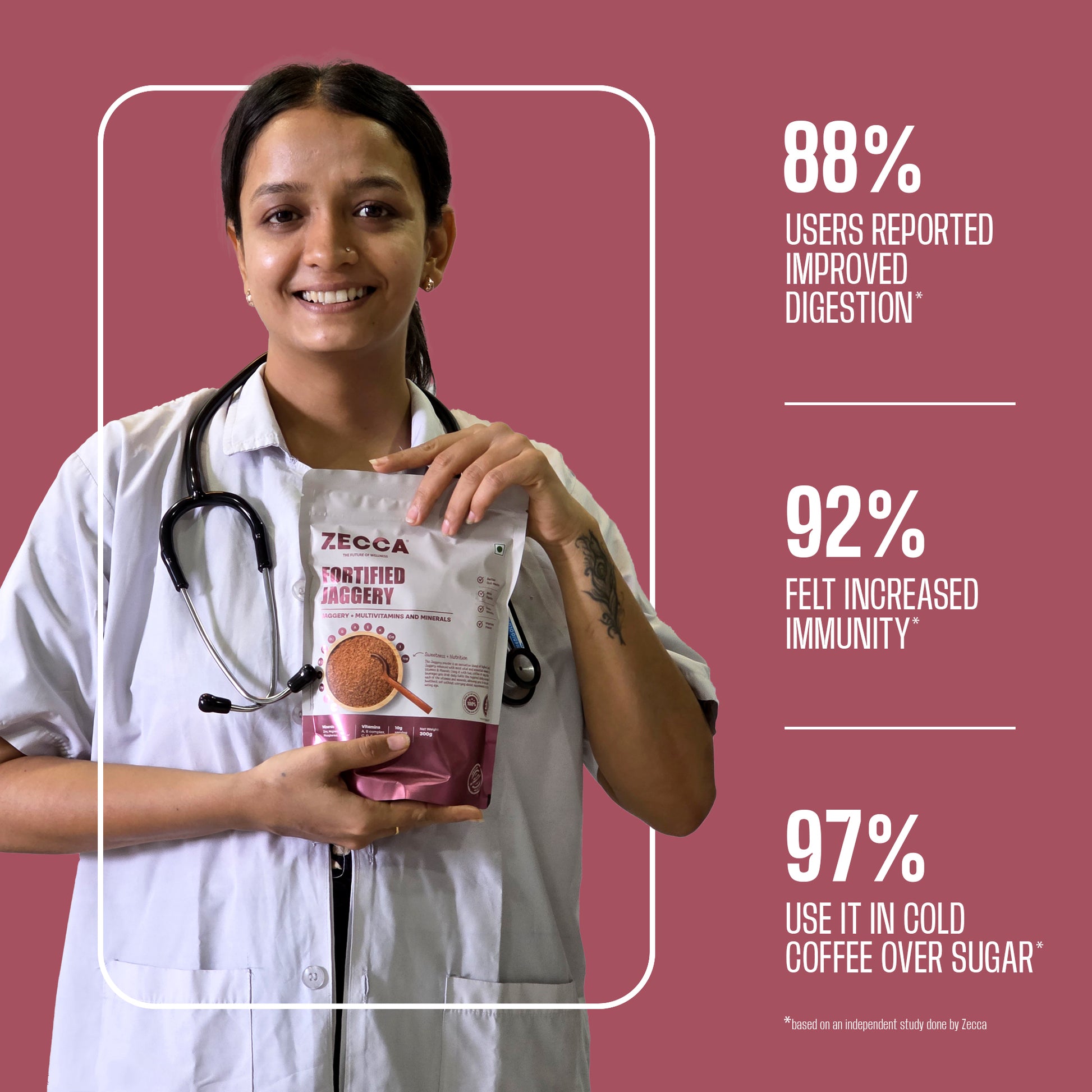 Users reported fewer sick days and when taking Zecca Fortified Jaggery daily.
